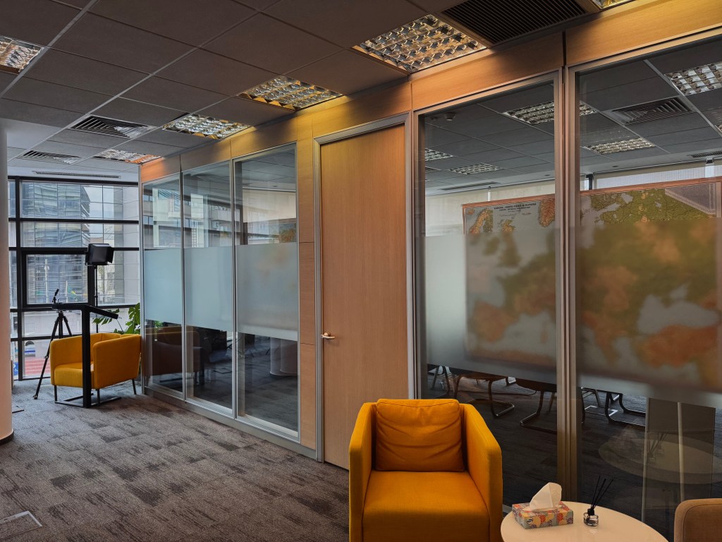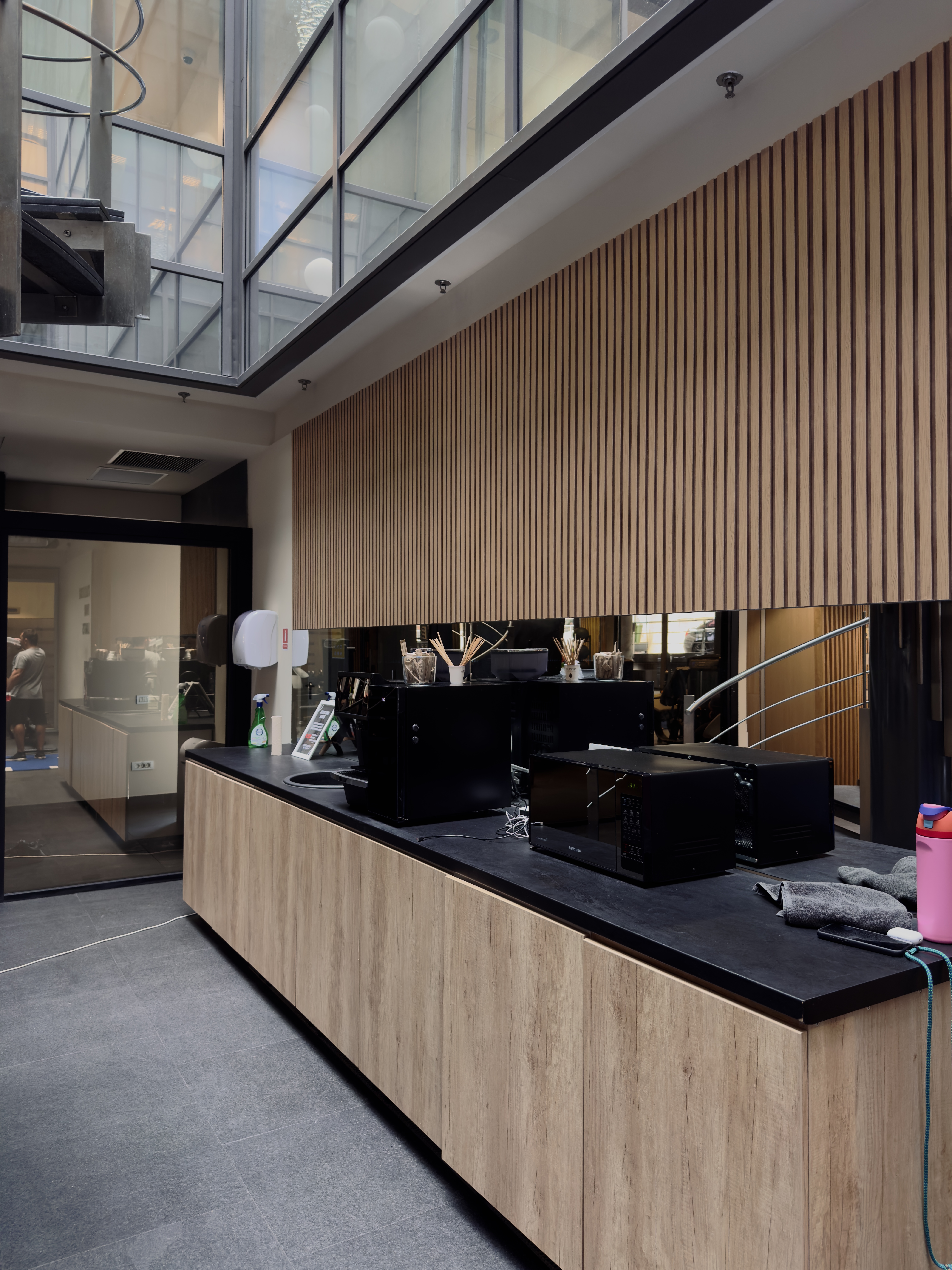 Designul peretelui cortina ignora intentionat scara, integrand cladirea intr-o zona predominant rezidentiala ca un element abstract fara nici o referinta la mediul interior al sau. Acesta explica modul in care ferestrele sunt divizate de benzile orizontale cu lungimi diferite determinand o geometrie ce personalizeaza cladirea, inauntrul careia intalnirile devin functionale, armonizand lumina, intimitatea si ventilatia.
