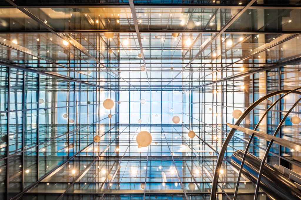 Arhitectura cladirii este contemporana, creata din materiale moderne, sticla fiind elementul definitoriu.